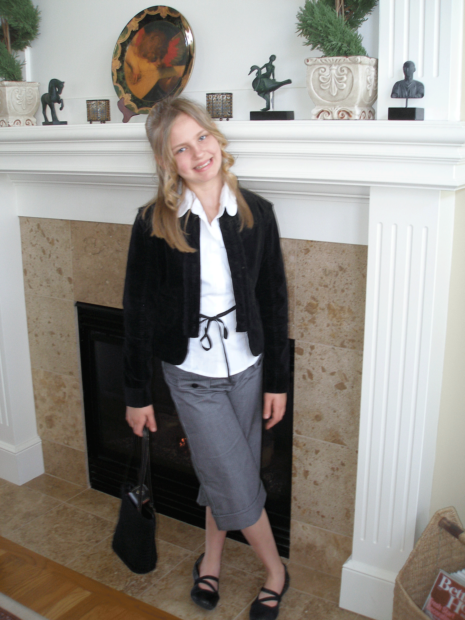 Katie’s birthday had been in March, and she had on for the first time this really cute outfit my Mom had given her. It was cream color velour jeans, with a matching cropped cream corduroy jacket. The jacket had all these gold buttons sewn everywhere on it, there must have been over 50 buttons of all types!